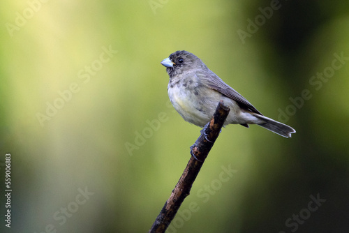 Naklejka premium A young of Yellow-bellied Seedeater also know as Baiano perched on a tree...