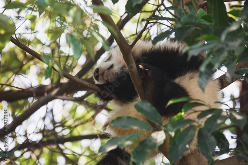 © clearjade, Obraz premium A young panda is sleeping on a tree