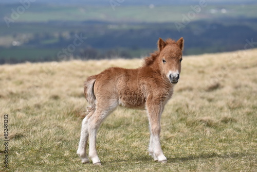 Fototapeta premium a young pony foal on the top of Dartmoor