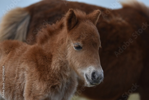 Fototapeta premium a young pony foal on the top of Dartmoor