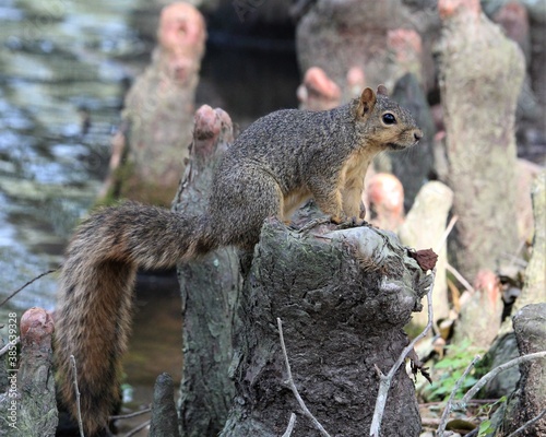 Naklejka premium A Young Red Squirrel at the New Iberia City Park in Louisiana