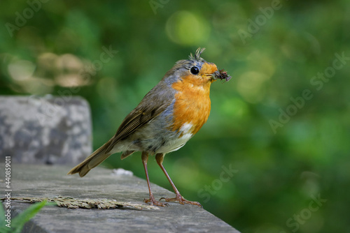© gehapromo, Fototapeta premium a young robin with various captured insects in its beak