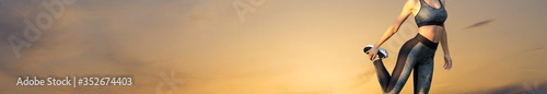 © Mountains Hunter, Obraz premium A young slim athletic girl in sportswear with snakeskin prints performs a set of exercises. Fitness and healthy lifestyle.