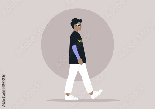 Fototapeta premium A young stylish character wearing fancy retro futuristic eye shades and a...