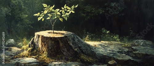 Obraz premium A young tree sprouting from an old