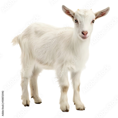 © nuralam_gfx, Fototapeta premium A young white goat stands proudly against