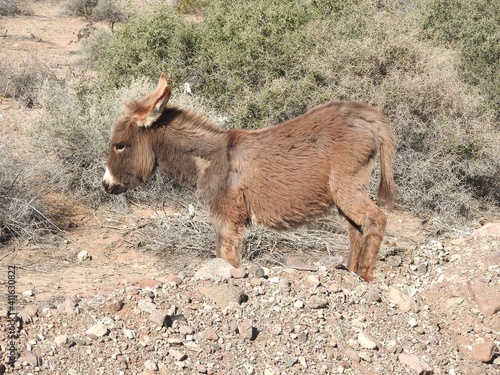Obraz premium A young wild burro living in the Mojave Desert, Parker Dam area, San Bernardino County, California.