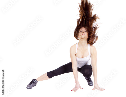 © MichelUlman, Obraz premium A young woman is stretching her body.