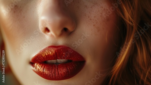 © Obsidian, Fototapeta premium a young woman's red lips. Shallow depth of field.