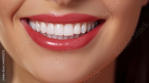 © WS Studio 1985, Obraz premium A young woman's smile shows off her pearly whites. a consequence of the teeth-whitening process. The picture represents dental treatment for the mouth. generative ai