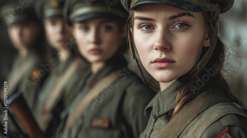 Fototapeta premium A Young Woman Soldier, wartime portrait