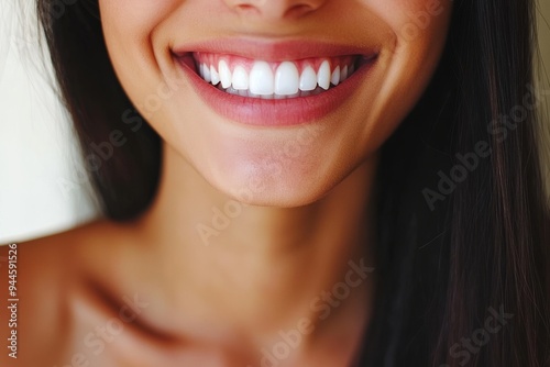 © Leo Rohmann, Fototapeta premium A young woman with a soft smile surrounded by glowing fairy lights enjoying a quiet moment in a warm and cozy setting embodying peace warmth and contentment