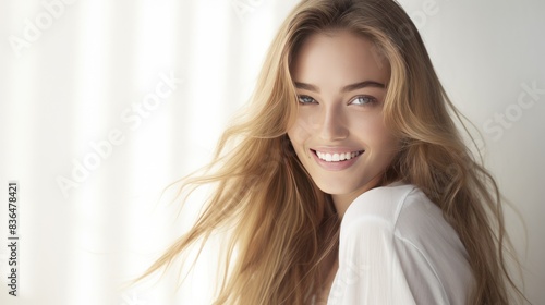 Fototapeta premium a young woman with flowing fair hair,