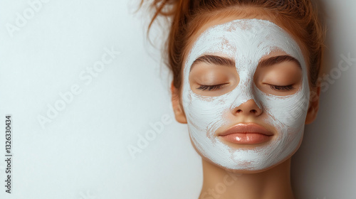 Fototapeta premium A young woman with her eyes closed applies a facial mask, showcasing a...