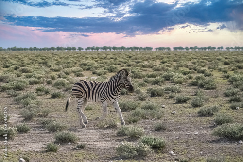 © Pascale Gueret, Naklejka premium A young zebra running in the bush in Namibia