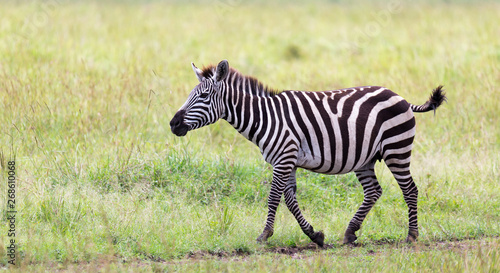 © 25ehaag6, Naklejka premium A Zebra family grazes in the savanna in close proximity to other animals