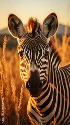 © Ghulam, Naklejka premium a zebra is standing in a field of tall grass.
