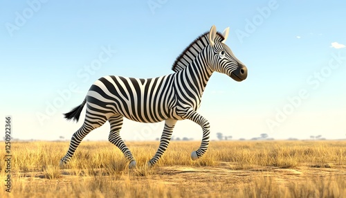 Fototapeta premium A Zebra Runs Across The Golden Savanna