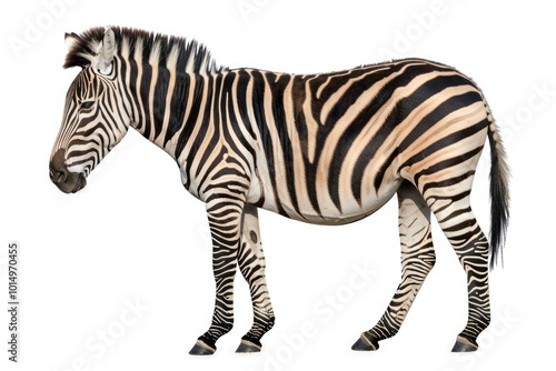 Obraz premium A zebra standing alone against a plain white background