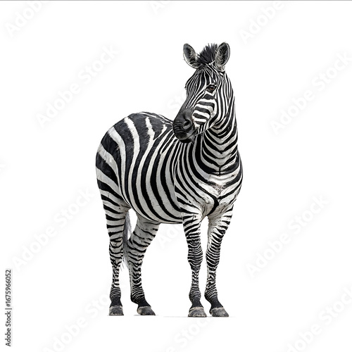 © axmilasky, Fototapeta premium A zebra standing on a white background an isolated photograph of a zebra with a clipping path a highquality photorealistic image a fullbody shot with no shad