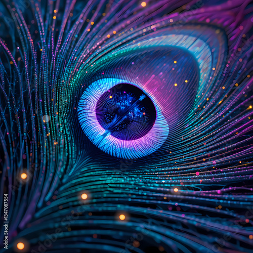 © ndaimagecreator, Obraz premium A zoomed-in view of a peacock’s iridescent feathers
