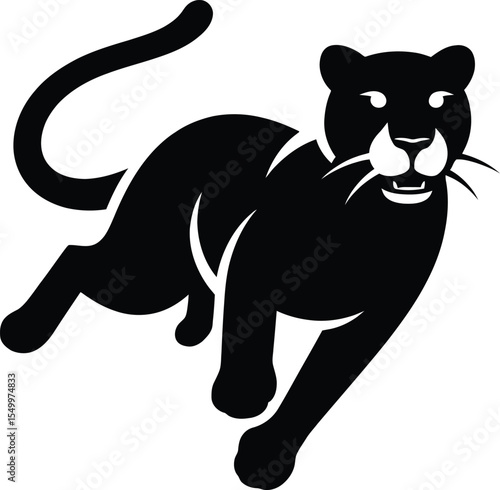 Fototapeta premium AA sleek black panther silhouette prowling forward with a curved tail and focused gaze in monochrome art