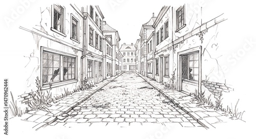 © Bidinstudio, Fototapeta premium Abandoned alleyway perspective drawing