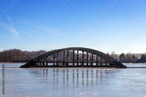 © dieterjaeschkephotos, Obraz premium abandoned bridge in the middle of the lake