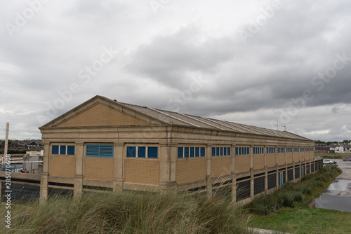 Fototapeta premium abandoned building warehouse grey sky uk