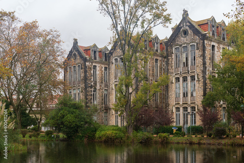 © Luis, Obraz premium Abandoned buildings old thermal hospital with a lake and D. Carlos I park in Caldas da Rainha