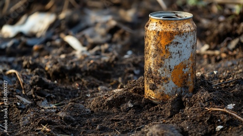 Obraz premium Abandoned Can in Polluted Ground