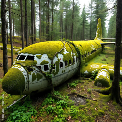 © Davor, Fototapeta premium Abandoned cargo plane in a forest clearing