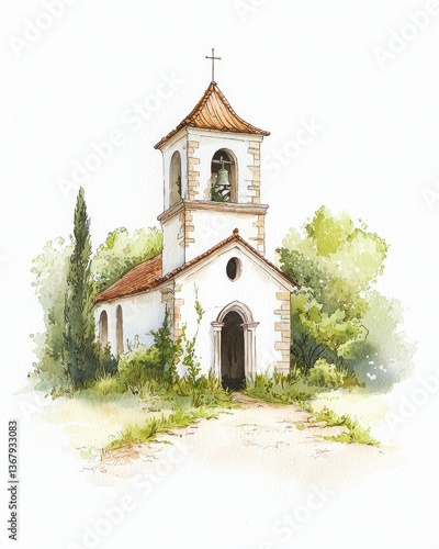 Naklejka premium Abandoned church surrounded by overgrown vegetation featuring a cross on the...