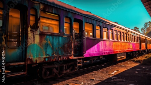 © David, Obraz premium Abandoned colorful train. Generative ai.