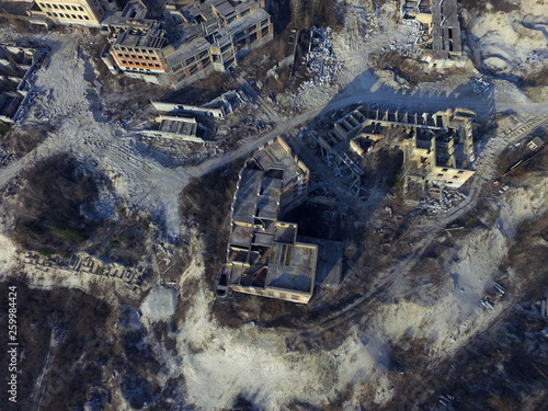 © Sergey Kamshylin, Fototapeta premium Abandoned construction site of Hospital. (aerial drone image)Abandoned at 1991,during Ukrainian undependence crisis. Kiev,Ukraine