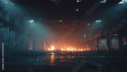 © Irwan, Obraz premium Abandoned factory interior ablaze