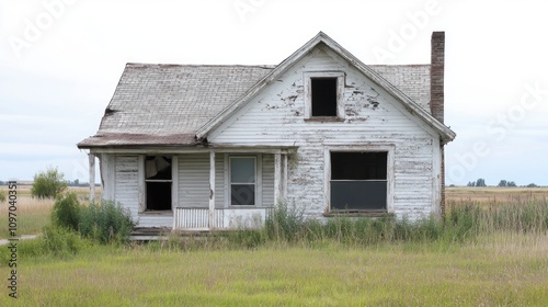 Obraz premium Abandoned Farmhouse Overgrown With Weeds In Field