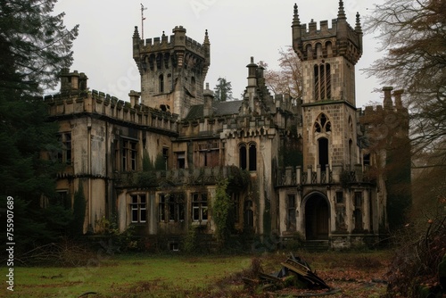 Fototapeta premium Abandoned gothic castle. Creepy inside. Generate Ai