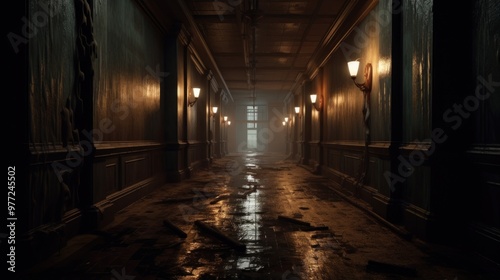 © daisha, Fototapeta premium Abandoned Hallway with Eerie Atmosphere