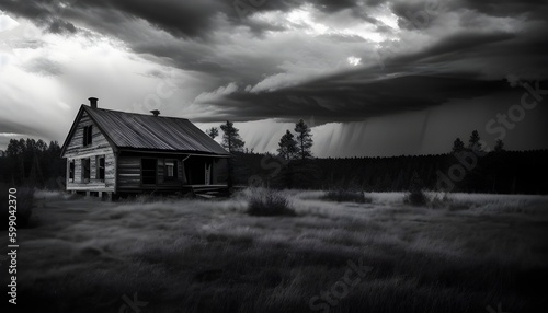 Obraz premium abandoned house in the mountains, Black and white