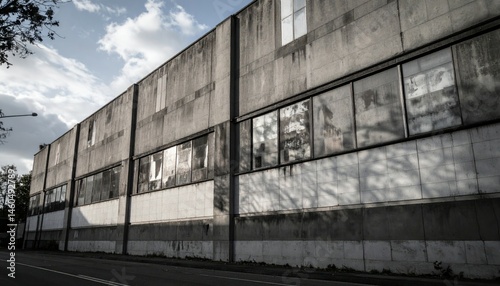 Fototapeta premium Abandoned Industrial Building with Weathered Facade and Broken Windows