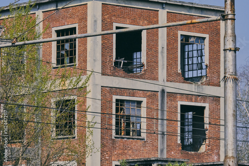 © emmanuelebaldassarre, Fototapeta premium Abandoned Industrial Chimney Tower with Overgrown Vegetation