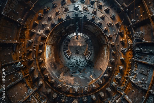 © Valentin, Obraz premium Abandoned Industrial Tunnel with Rusted Metal and Debris
