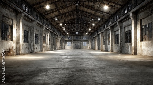 Fototapeta premium Abandoned Industrial Warehouse Interior