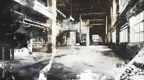 Fototapeta premium Abandoned Industrial Warehouse Interior with Grungy Decay and
