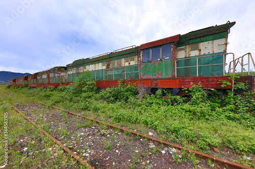 © MehmetOZB, Naklejka premium Abandoned old train from communist era in Albania