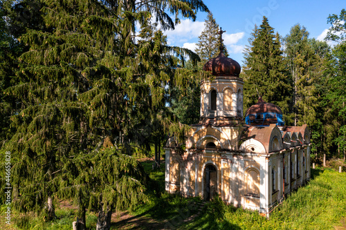 © ako-photography, Fototapeta premium abandoned Orthodox Church in the forest, Galgauska, Latvia, disappearing history, aerial view