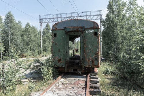 © vetaka, Fototapeta premium abandoned railway carriage in the forest
