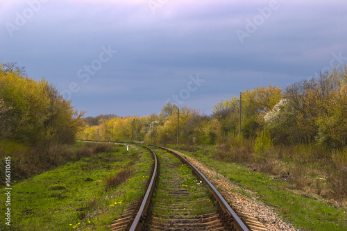 © yarohork, Obraz premium Abandoned railway old covered tall bushes