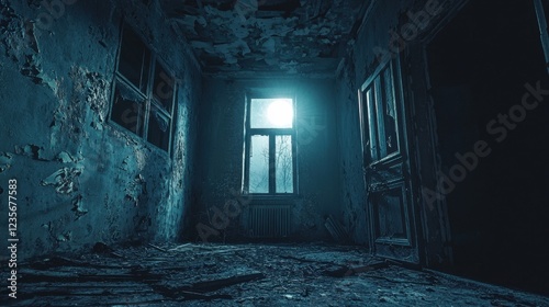 © Kitta Studio, Obraz premium Abandoned Room with Moonlight Shining Through a Broken Window